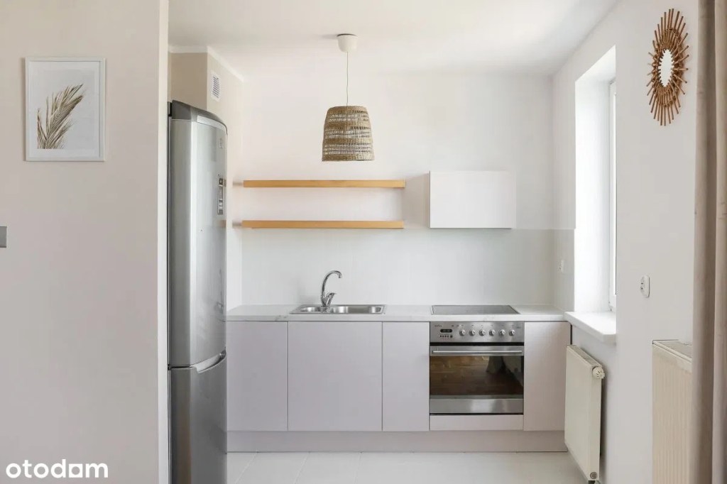 Kawalerka ma funkcjonalny rozkład a otwarta na salon kuchnia z oknem sprawia że jest przestronna i ustawna. Jest też jasna i dobrze doświetlona dzięki południowo-zachodniej ekspozycji okien a z 3 metrowego balkonu rozciąga się bardzo ładny widok.