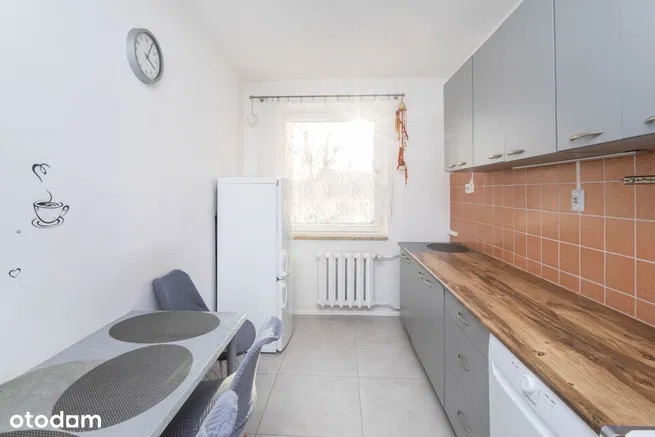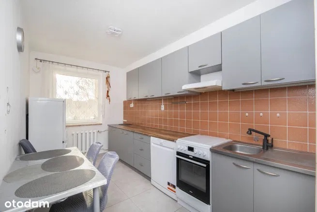 W świeżo wyremontowanej kuchni jest praktyczna zabudowa kuchenna wykonana na zamówienie oraz wszystkie niezbędne sprzęty kuchenne włącznie ze zmywarką.