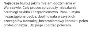 „Transakcja przebiegła sprawnie i szybko. Pełen profesjonalizm pani Justyny, która ogarnęła cały proces sprzedaży mieszkania. Polecam!!”
